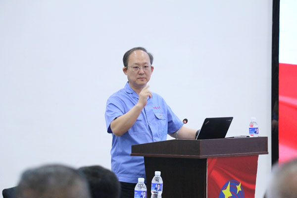 (嚴老師授課) 宣誓后,受公司邀請和中共滄州市委黨校指派,黨校二級調研員嚴志海教授進行專題講座。對黨史中的各個重要歷史事件進行了深入淺出的講解。